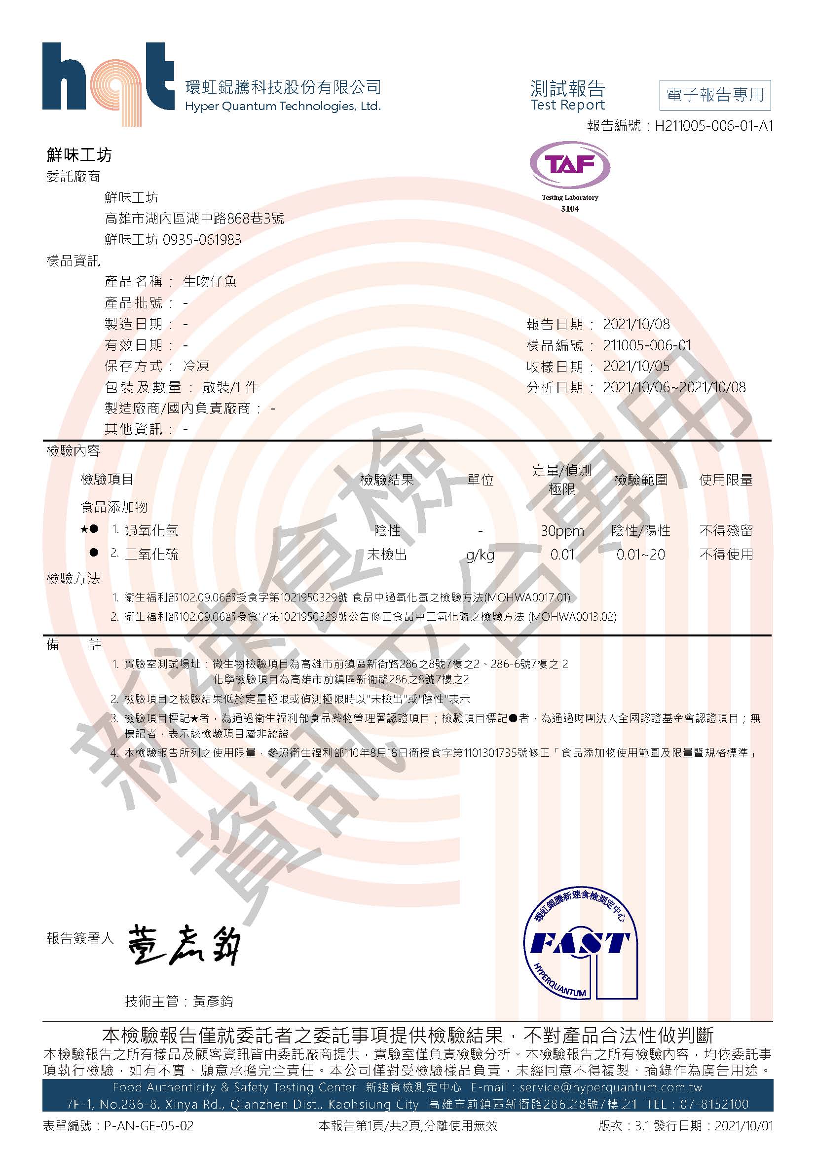 報告編號:H211005-006-01-A1