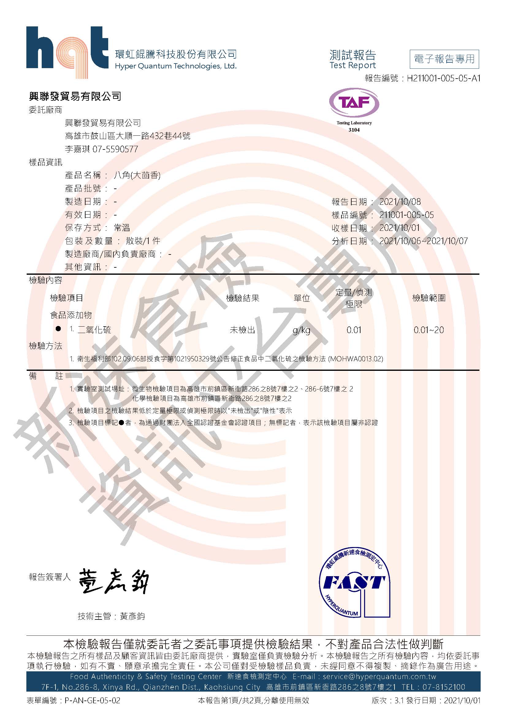 報告編號:H211001-005-05-A1