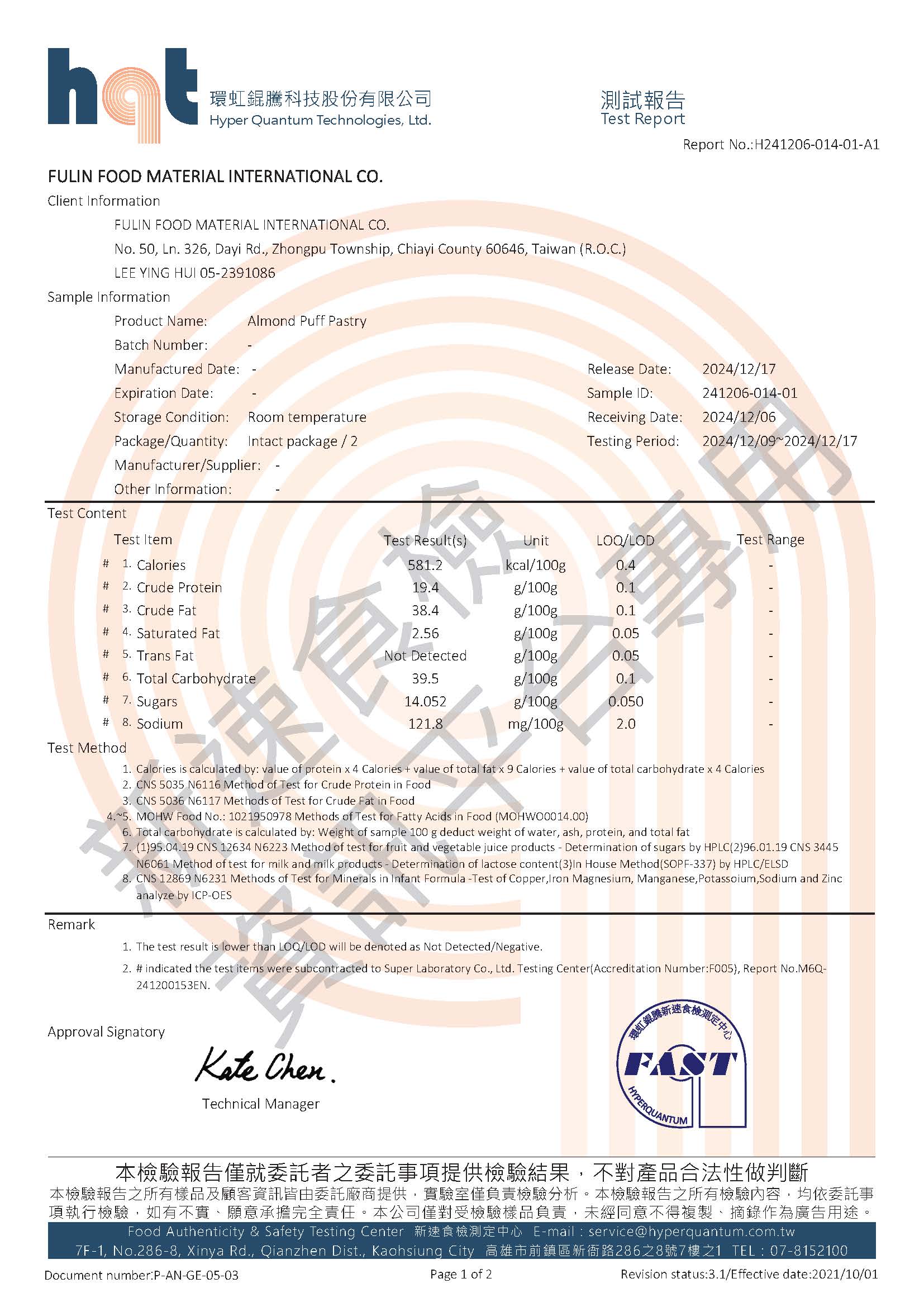 樣品名稱:Almond Puff Pastry