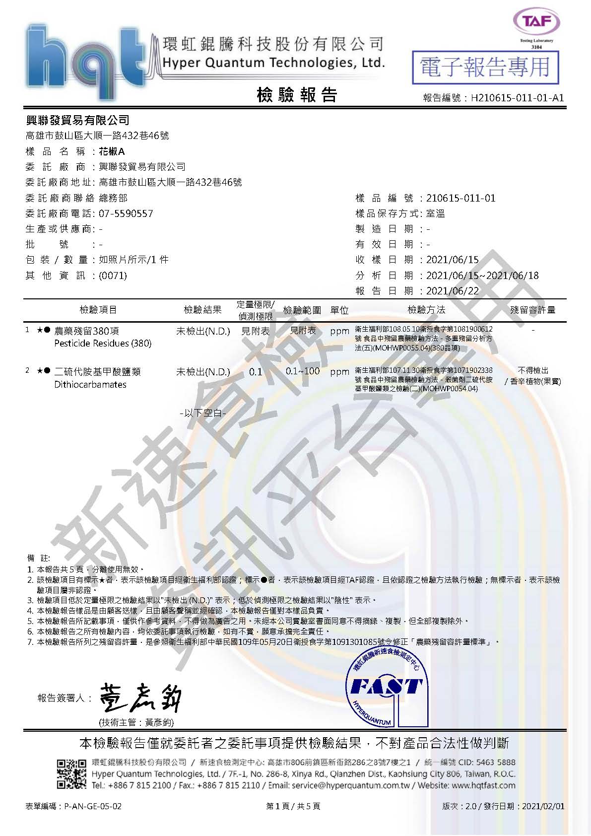 報告編號:H210615-011-01-A1