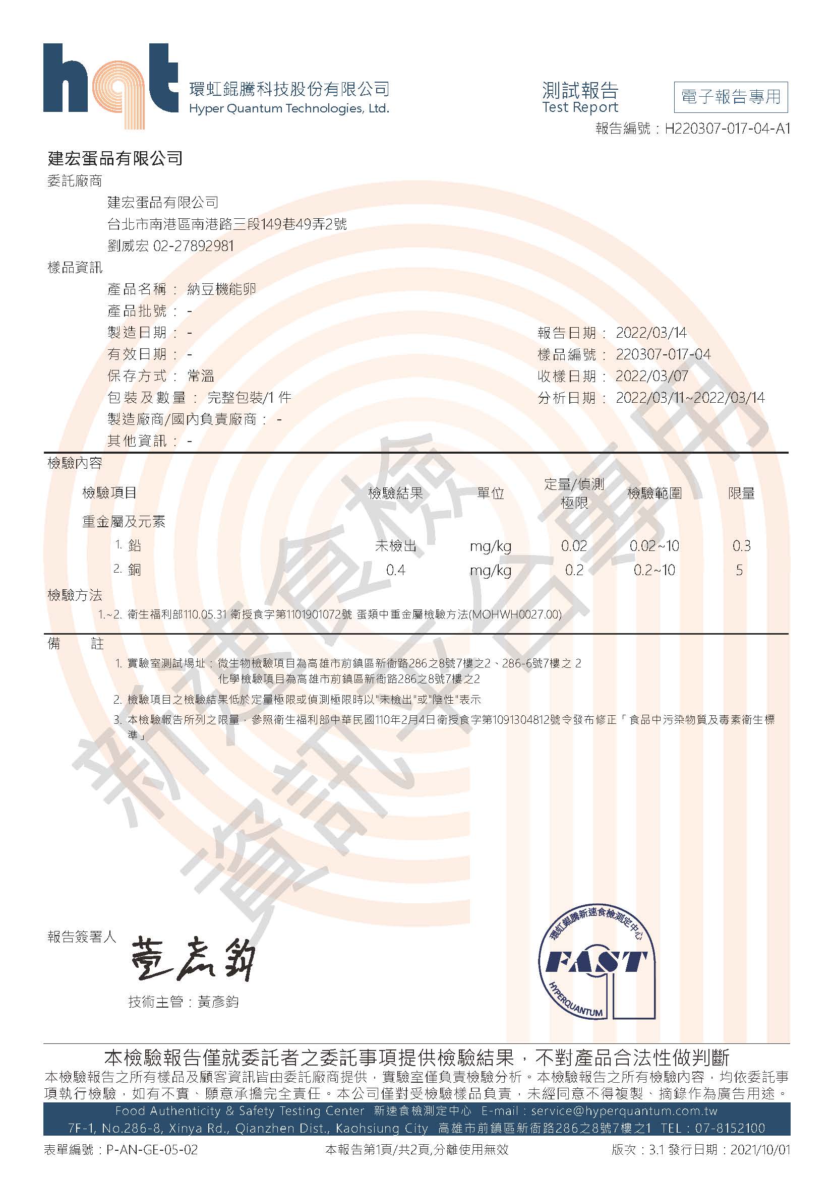 報告編號:H220307-017-04-A1