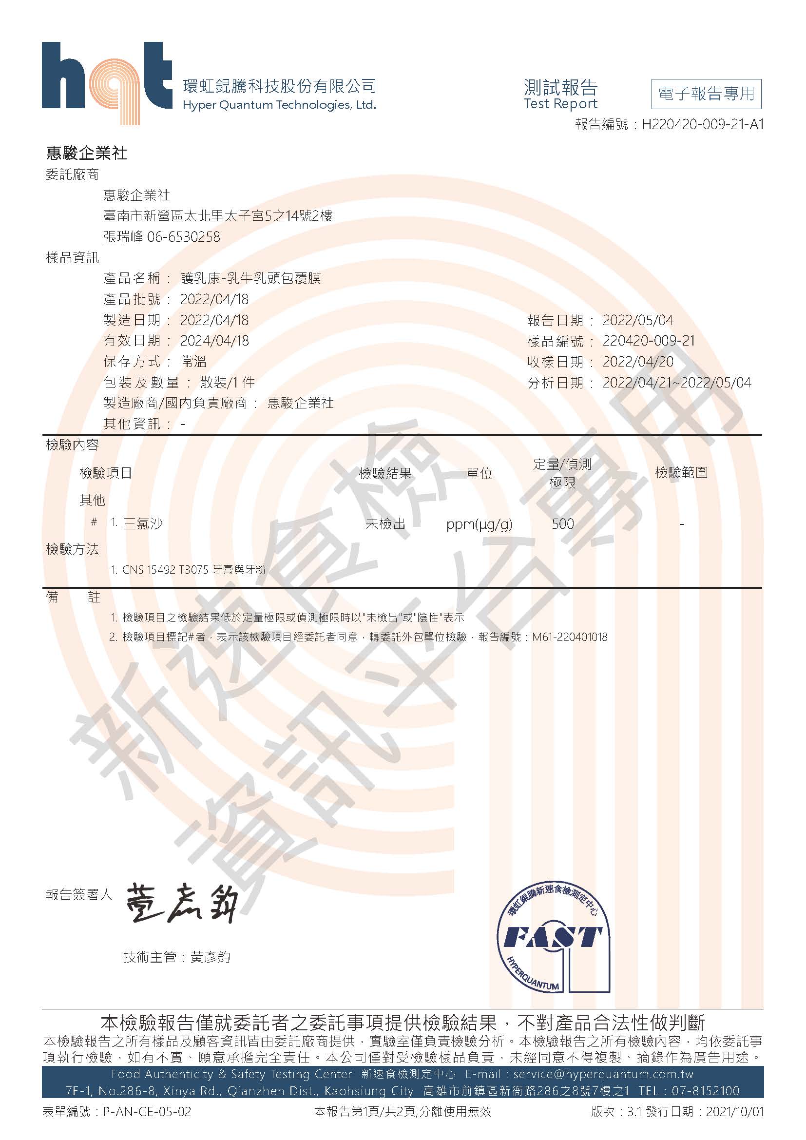 報告編號:H220420-009-21-A1