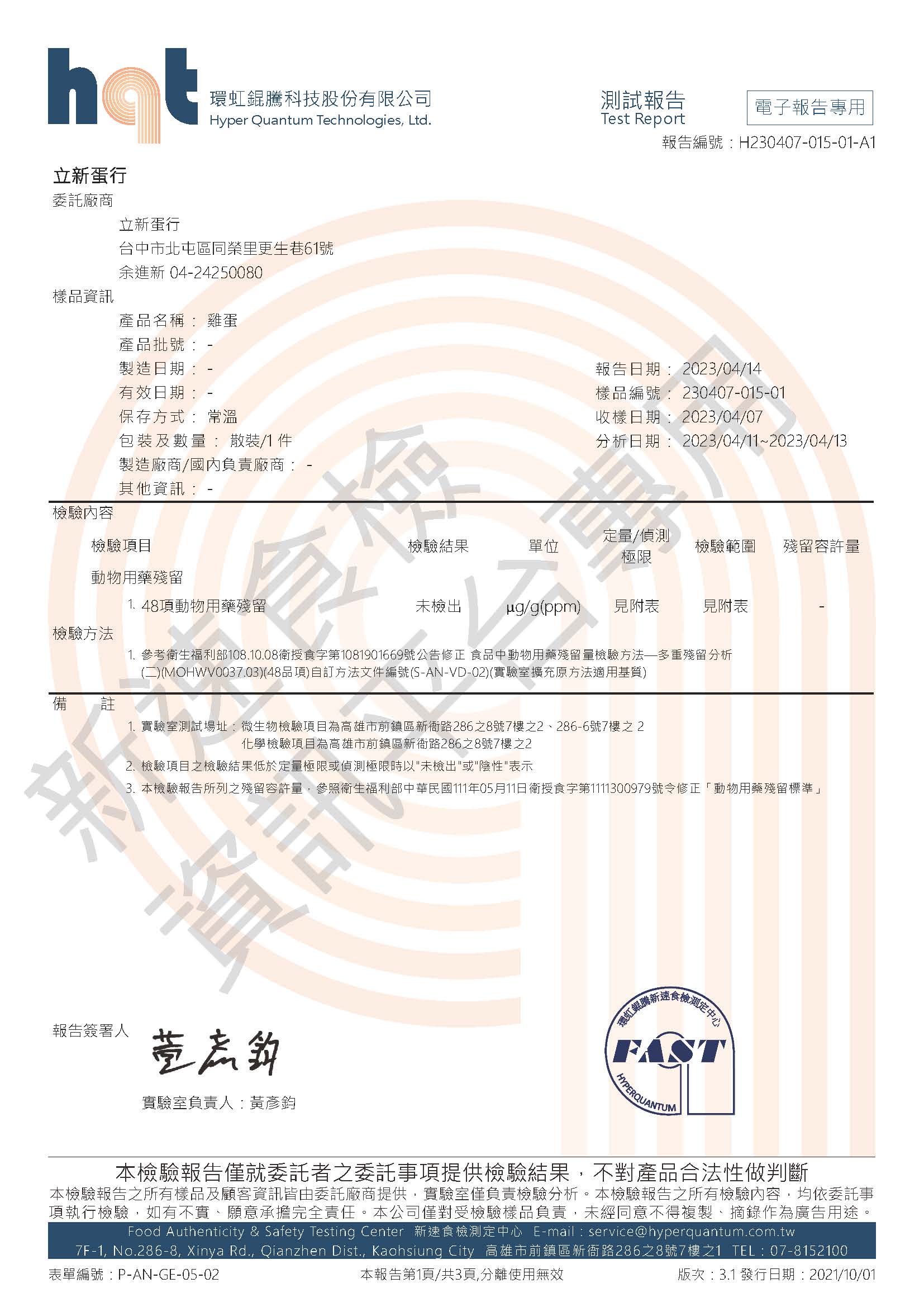 報告分類:奶蛋乳製品 / 蛋類 / 雞蛋