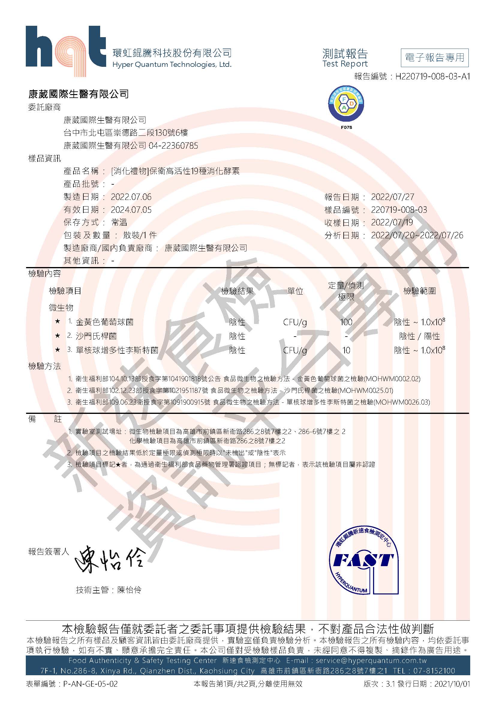 樣品名稱:[消化禮物]保衛高活性19種消化酵素