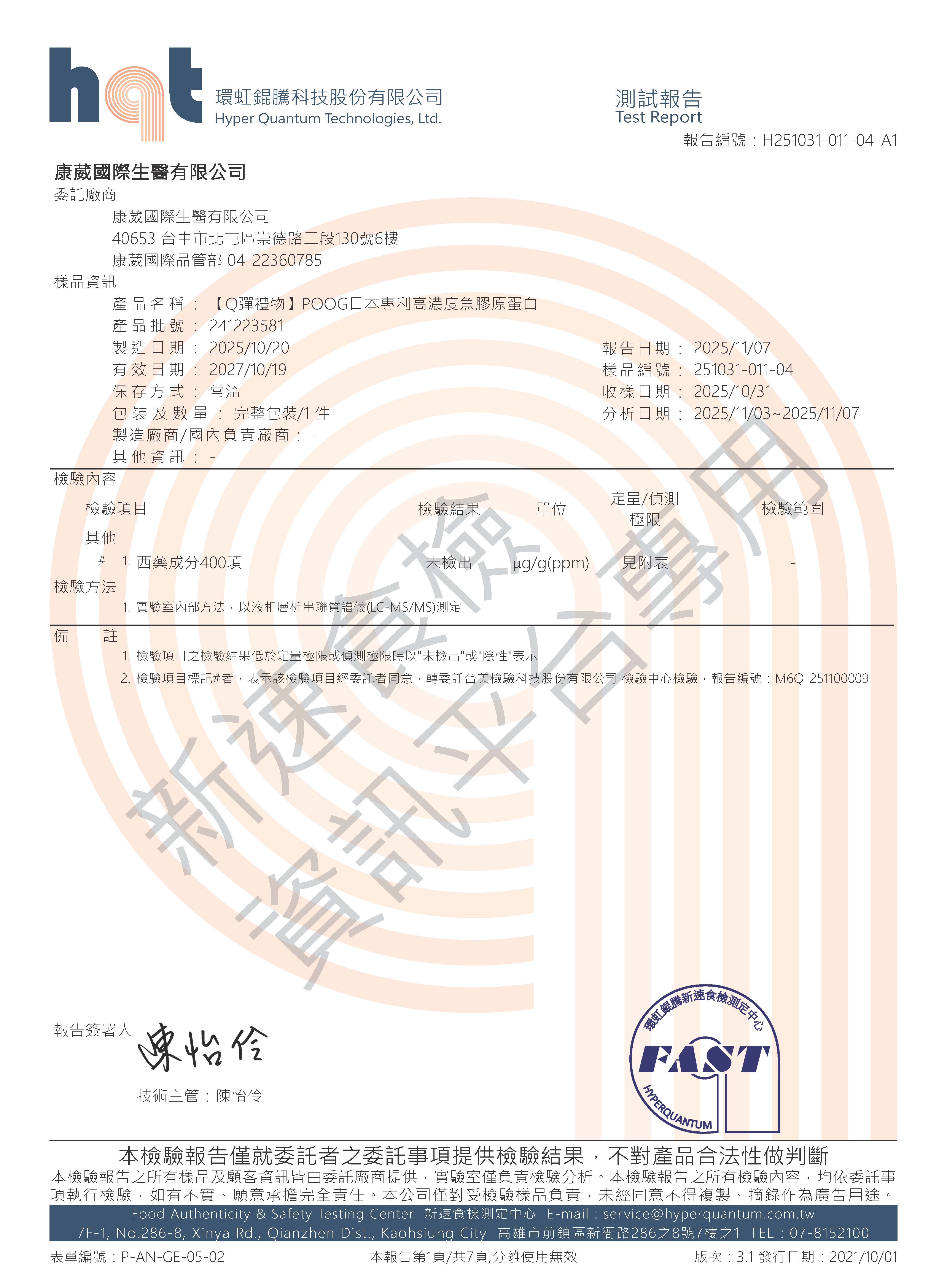 樣品名稱:【Q彈禮物】POOG日本專利高濃度魚膠原蛋白
