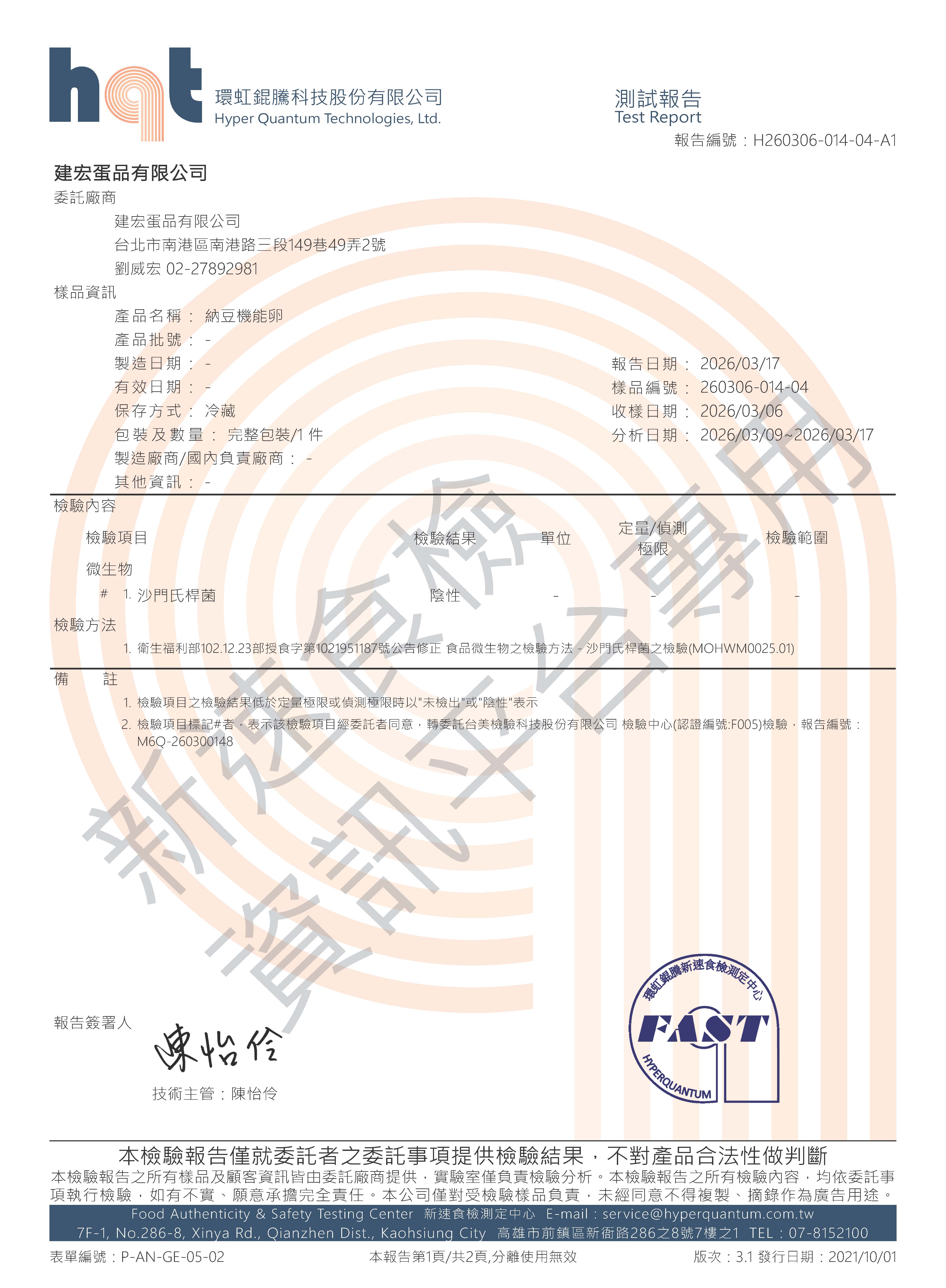 報告分類:奶蛋乳製品 / 蛋類 / 雞蛋