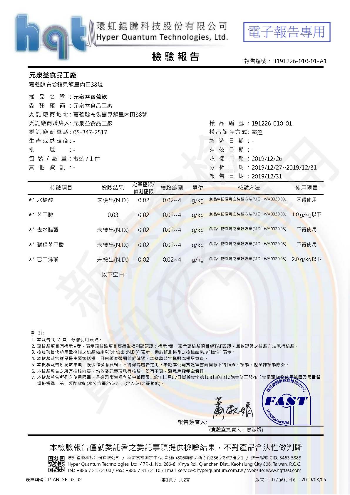 報告編號:H191226-010-01-A1