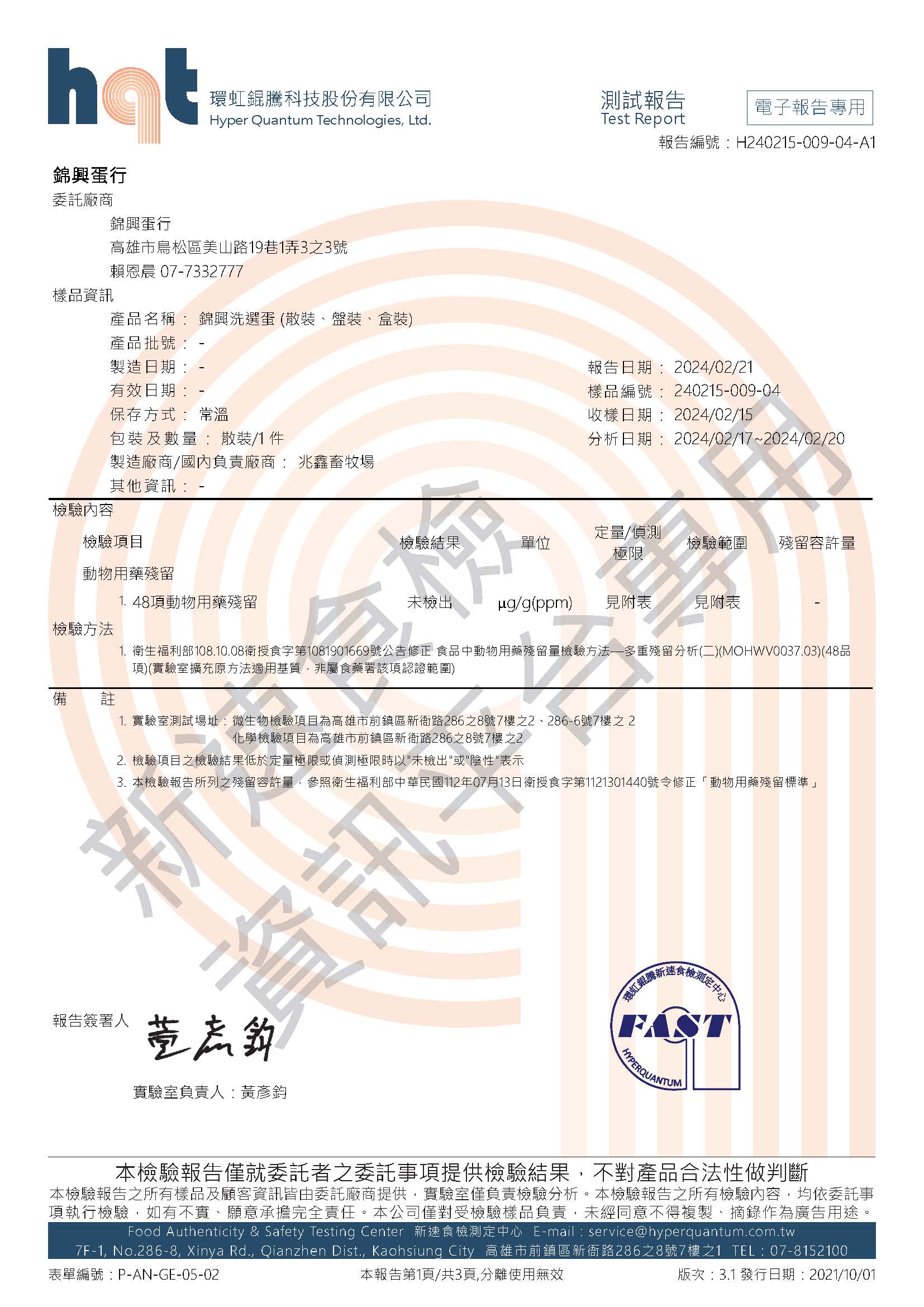 樣品名稱: 錦興洗選蛋 (散裝、盤裝、盒裝)