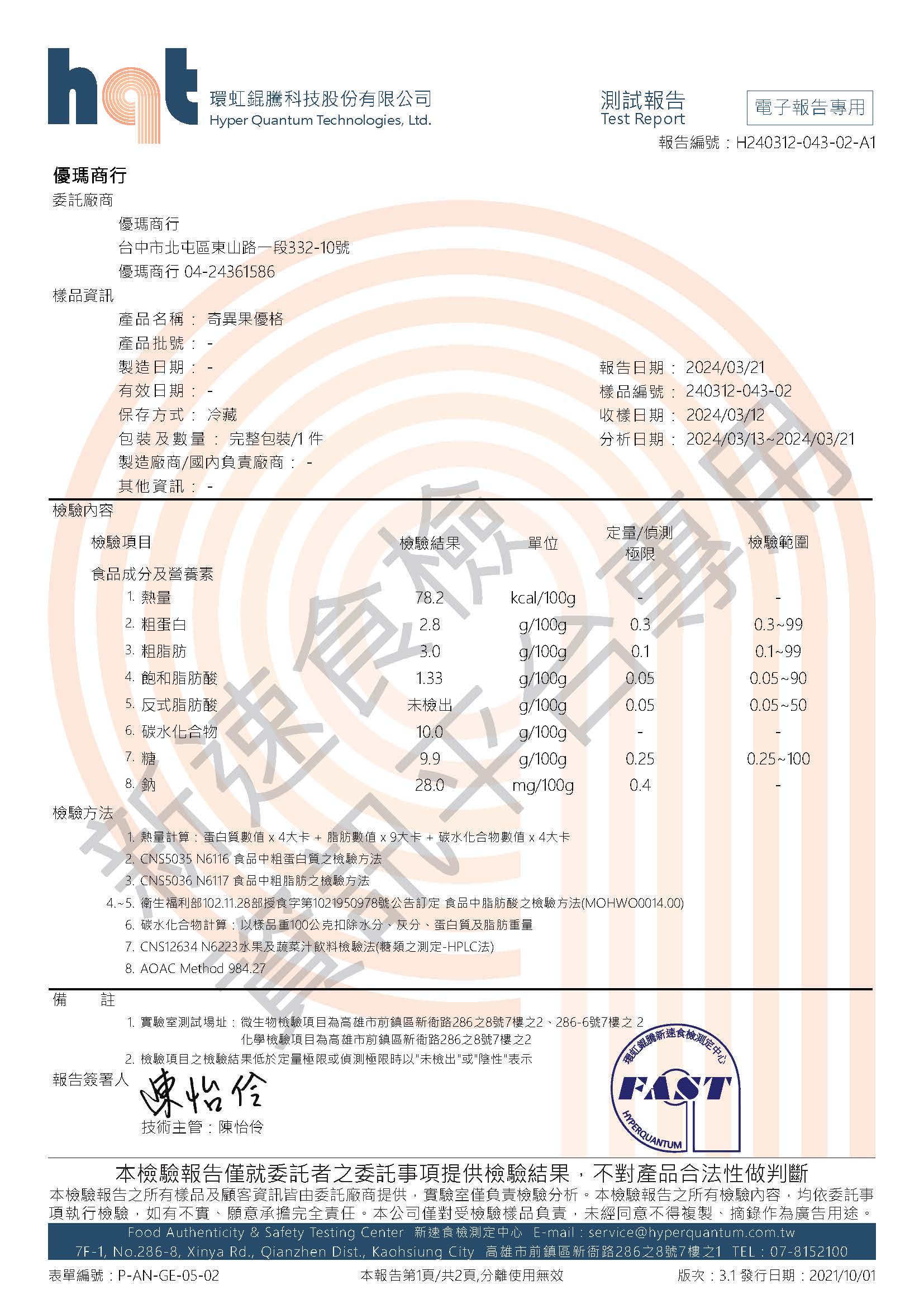 報告分類:奶蛋乳製品 / 乳製品 / 乳類加工品