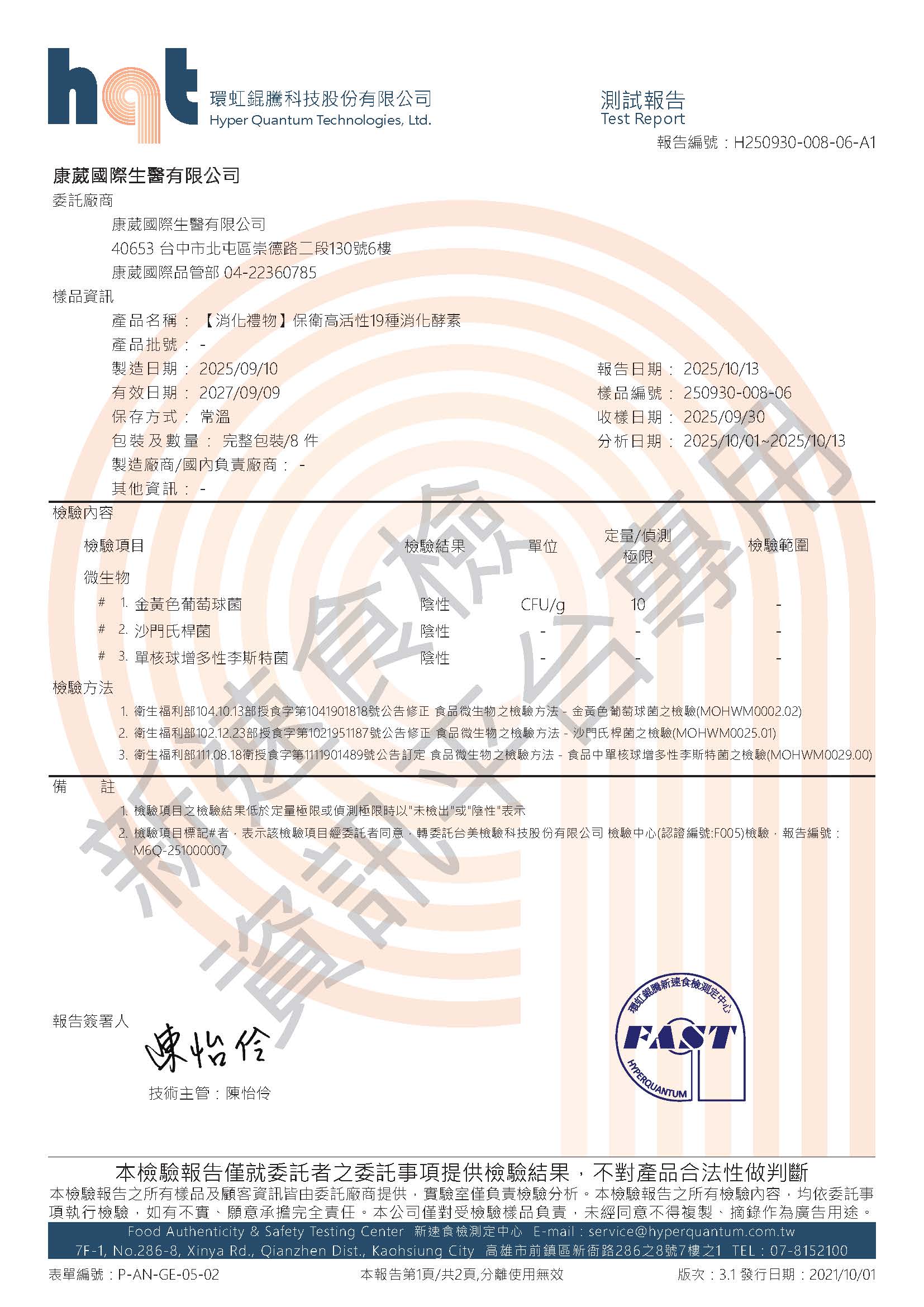 樣品名稱:【消化禮物】保衛高活性19種消化酵素