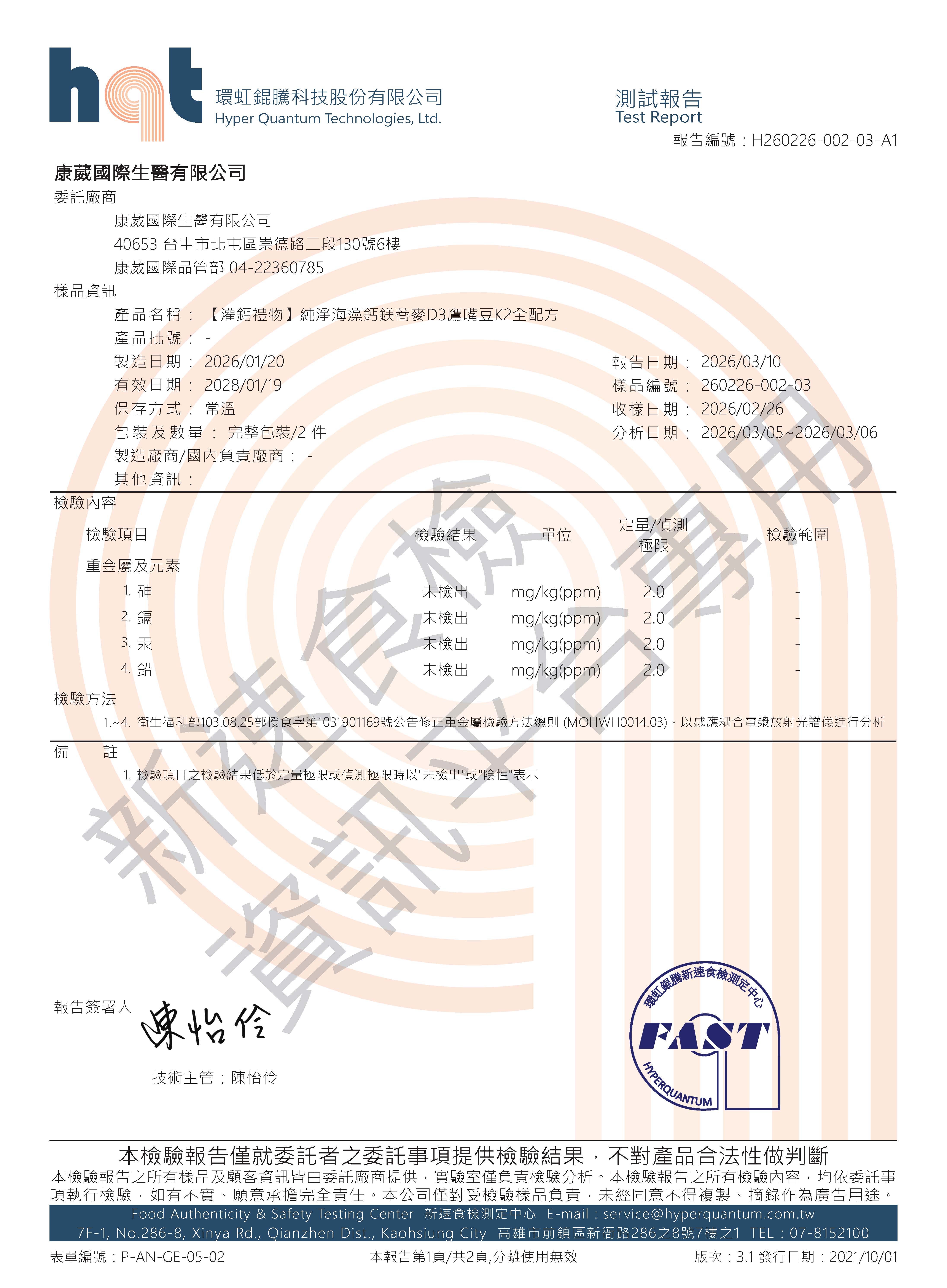 樣品名稱:【灌鈣禮物】純淨海藻鈣鎂蕎麥D3鷹嘴豆K2全配方