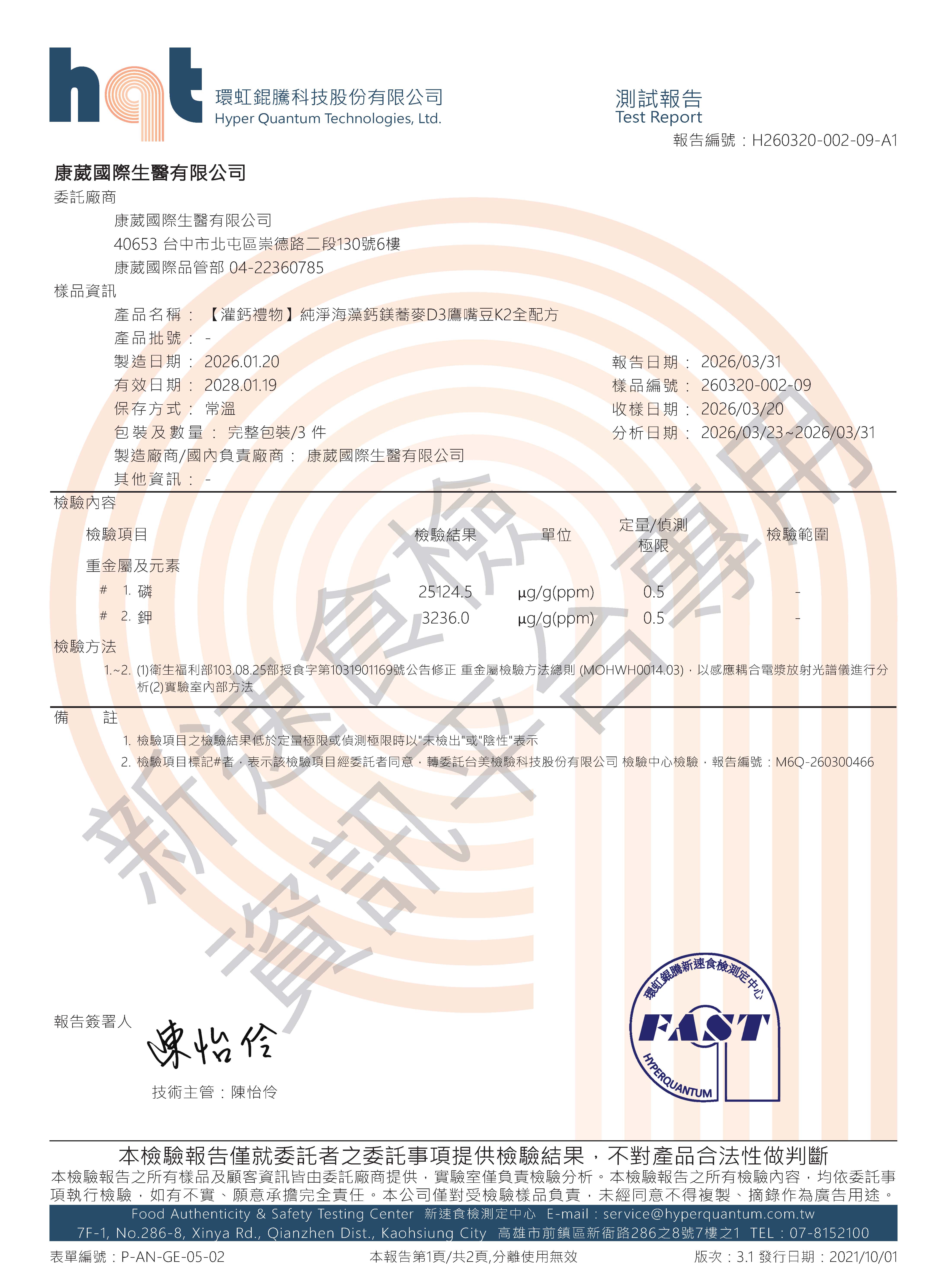 樣品名稱:【灌鈣禮物】純淨海藻鈣鎂蕎麥D3鷹嘴豆K2全配方