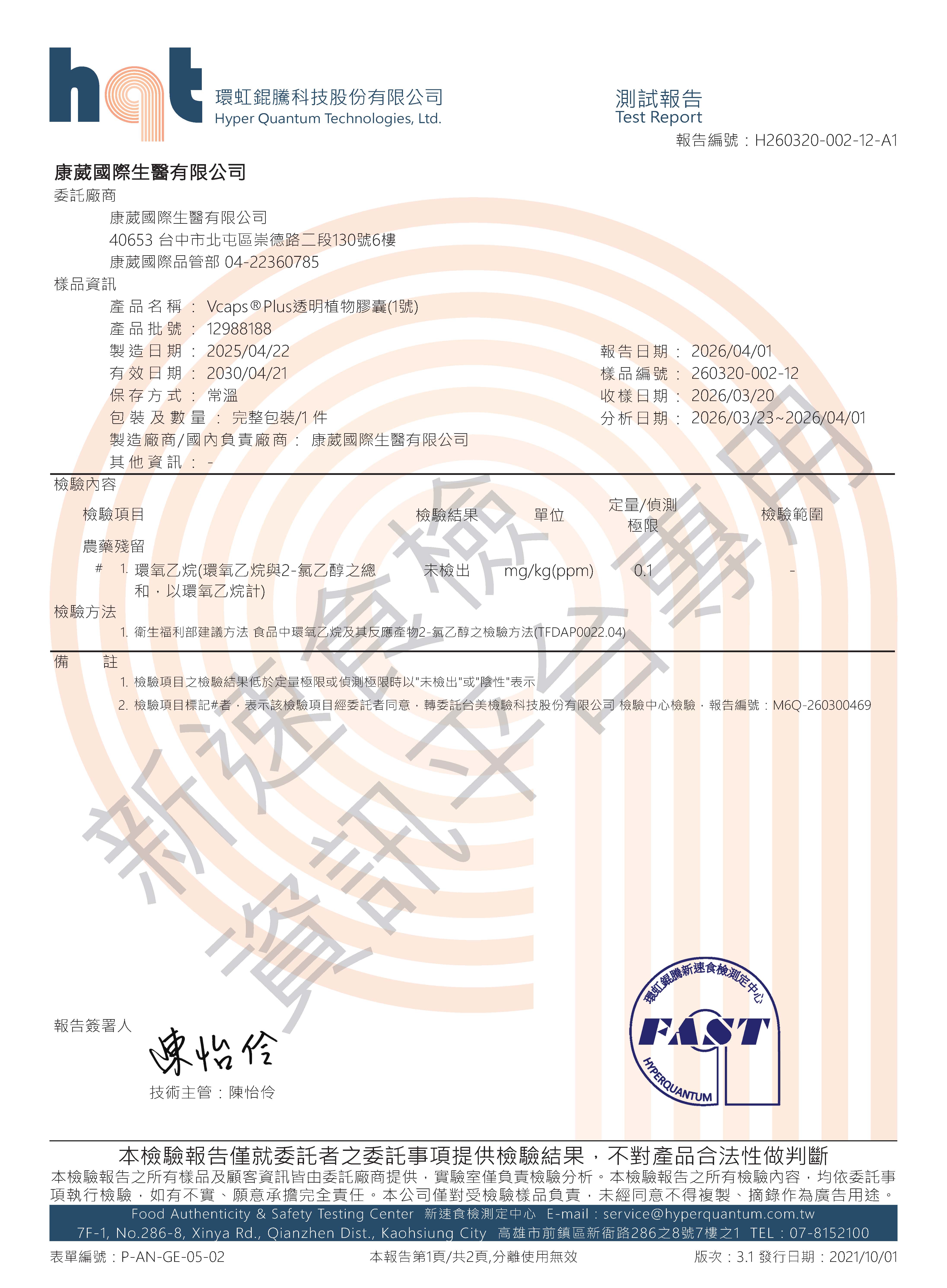 報告編號:H260320-002-12-A1